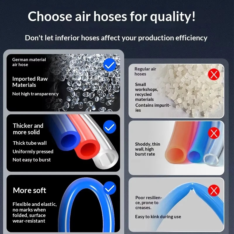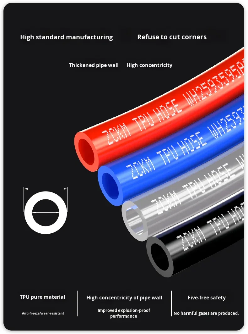 Air Compressor Pneumatic High-Pressure Tube 12mm Transparent Pipe Antifreeze Inflator Pump Hose 10 meters length PU 8*5 Air Hose