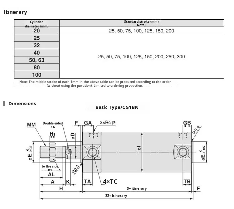 Industrial Manipulator CG1BN Series Aluminum Pneumatic Alloy Lightweight Cylinders ModelsCG1BN20/25/32/40/50/63 Mini Cylinders