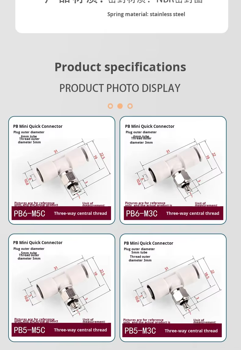 Pressure gauge air T-type Mini three-way external thread quick-connect PB3/PD4/6-M3/M4/M5/M6/01 pneumatic tube quick connector