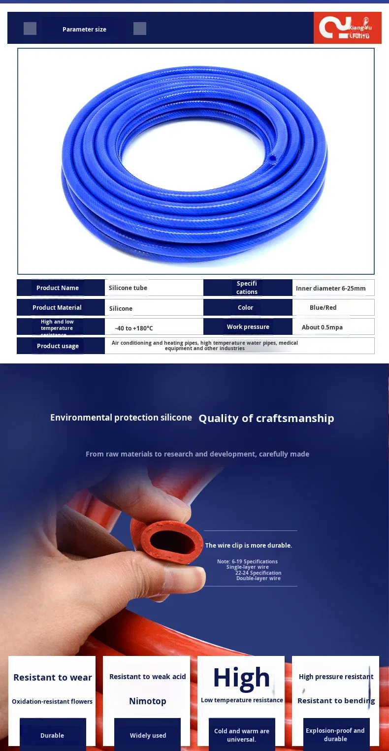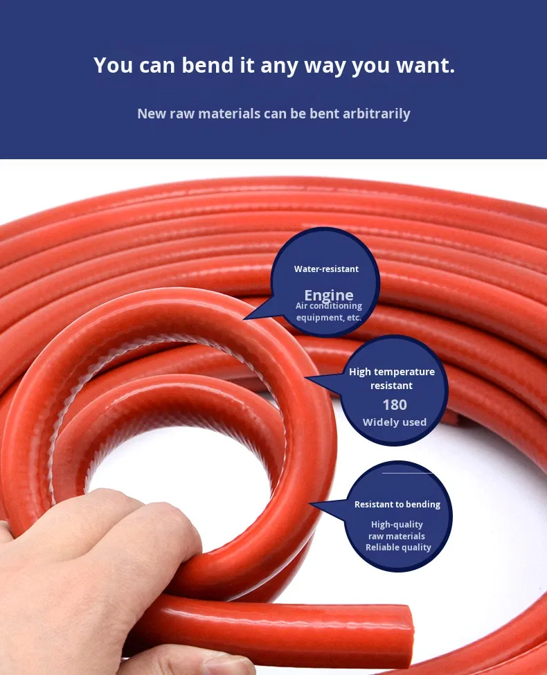 3. Temperature Resistance and Environmental AdaptabilityThe silicone base material can withstand a wide temperature range of -40℃~200℃. With the protection of the braided layer, it can work stably in environments with alternating high and low temperatures, and is applicable to coolant/vacuum pipes in automobile engine compartments, high-temperature steam pipelines of ovens/steam equipment, and low-temperature fluid transportation in cold chain equipment.